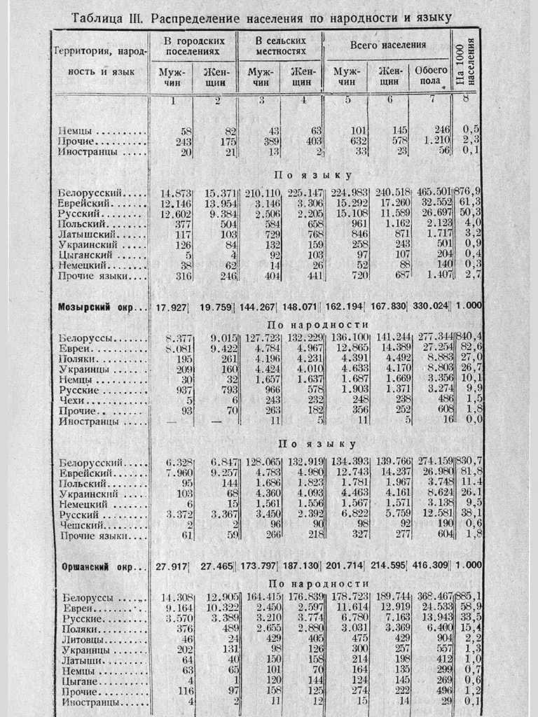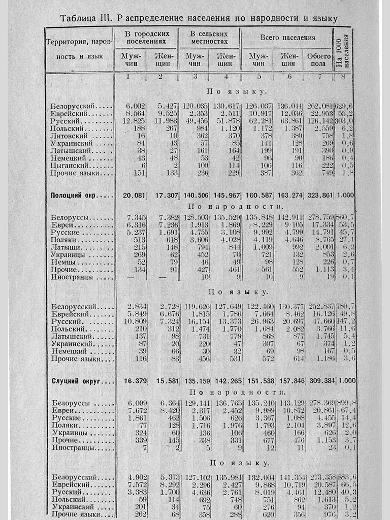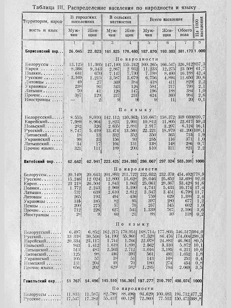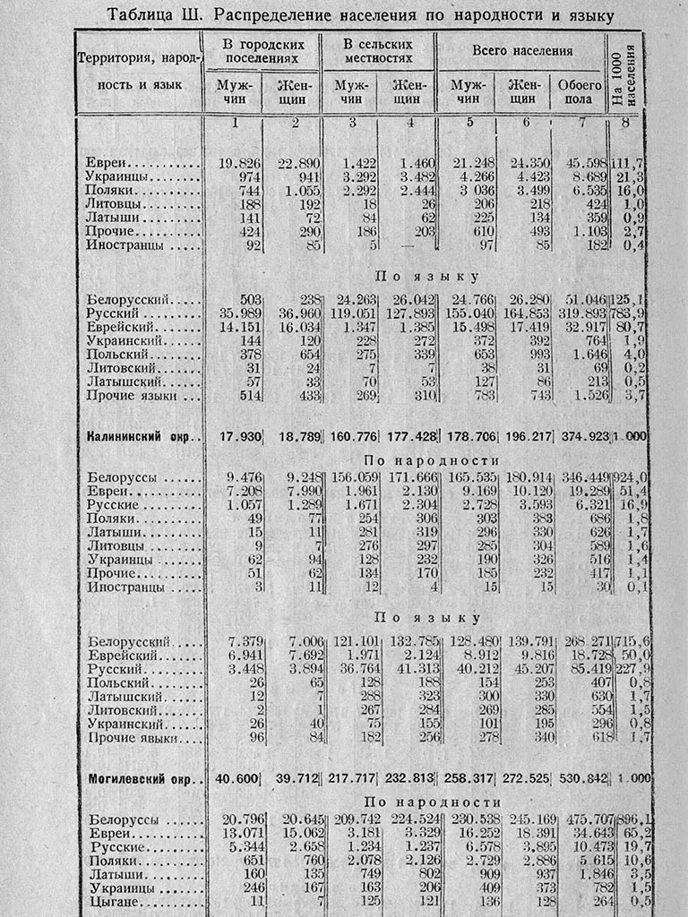 Пра выкарыстанне многіх моў на беларускіх тэрыторыях сведчыць і ўсеагульны перапіс насельніцтва, які правялі савецкія ўлады ў 1926 годзе. На той момант у Савецкай Беларусі налічылі амаль пяць мільёнаў жыхароў. Большасць з іх адзначала роднай мовай беларускую, на другім месцы — руская, на трэцім — ідыш, на чацвёртым — польская.
