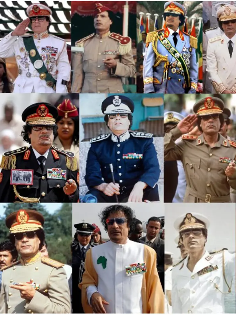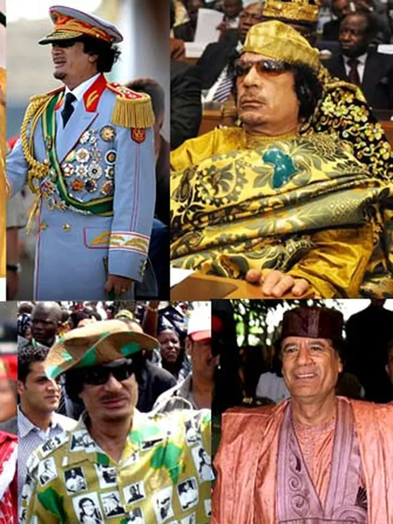 У тыя часы пачало афармляцца яго пачуццё моды, звязанае з бедуінскім дзяцінствам. Кадафі рэдка бачылі ў адной і той жа вопратцы двойчы. Ён спалучаў традыцыйнае лівійскае адзенне, яркія колеры, вайсковую форму, упрыгожванні — часцей за ўсё, медалі ці знакі адрознення. Стыль Кадафі быў не толькі наўмысна паказушным, але і часткай яго асобы — ён вылучаў яго сярод іншых, і павінен быў сфарміраваць яго імідж рэвалюцыянера і лідара народа. На гэтым усё не заканчвалася: адзін з самых абмяркоўваемых аспектаў эксцэнтрычнасці Кадафі — яго асабістая служба бяспекі, яго амазонская гвардыя. Гэта была элітная група жанчын-целаахоўнікаў. Ён выкарыстоўваў яе, каб паказаць, што выступае за правы жанчын. Хаця пазней высветлялася, што жанчыны не столькі абаранялі Кадафі, колькі займаліся, у тым ліку, і сексуальным задавальненнем лівійскага лідара.