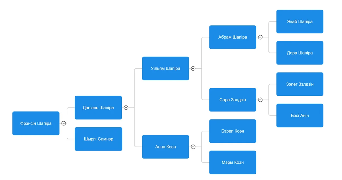 Радавод Фрэнсін Шапіры (без уліку яе братоў і сясцёр, братоў і сясцёр бацькоў, дзядоў).