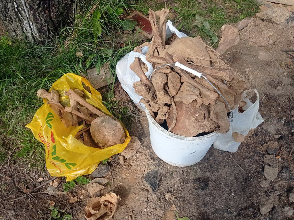 Першыя чалавечыя косці знайшлі 8 жніўня на схіле адразу за бальніцай. На глыбіні паўтара метра сталі адкопваць усё новыя парэшткі. Рабочыя даставалі косці і складвалі іх у вёдры. Па іх словах, шкілеты ляжалі пластамі, адзін на адным. Некаторыя знаходзіліся ў палажэнні стоячы. Разам з касцямі былі выяўлены элементы адзення, абутак, цвікі і ўпрыгожванні.